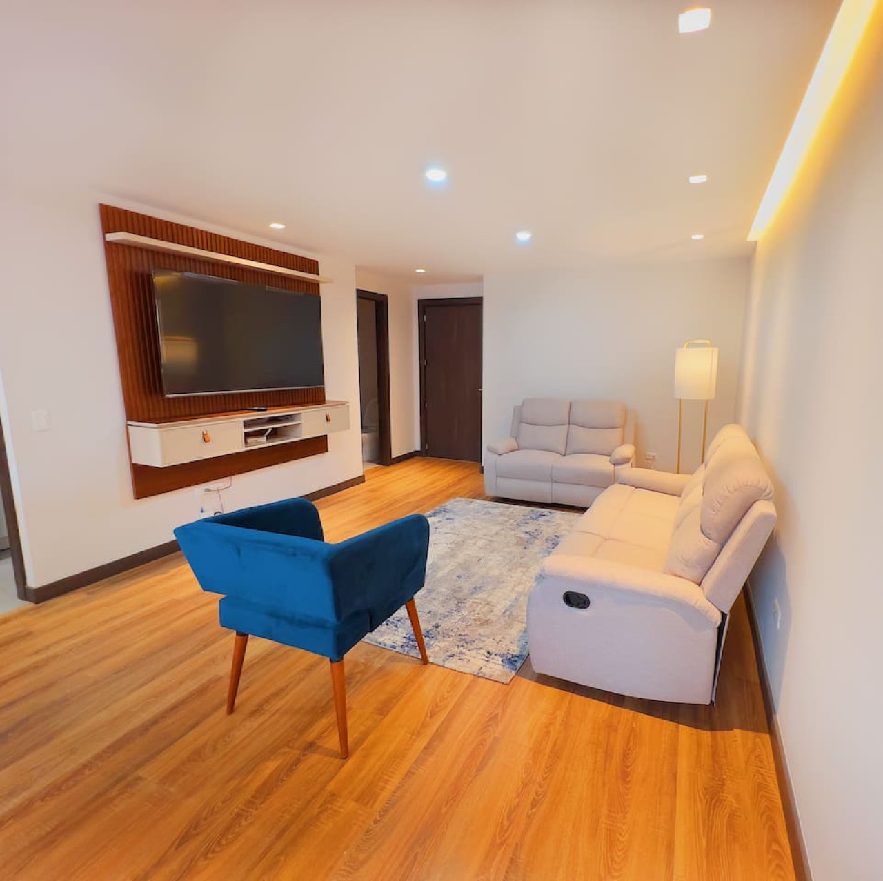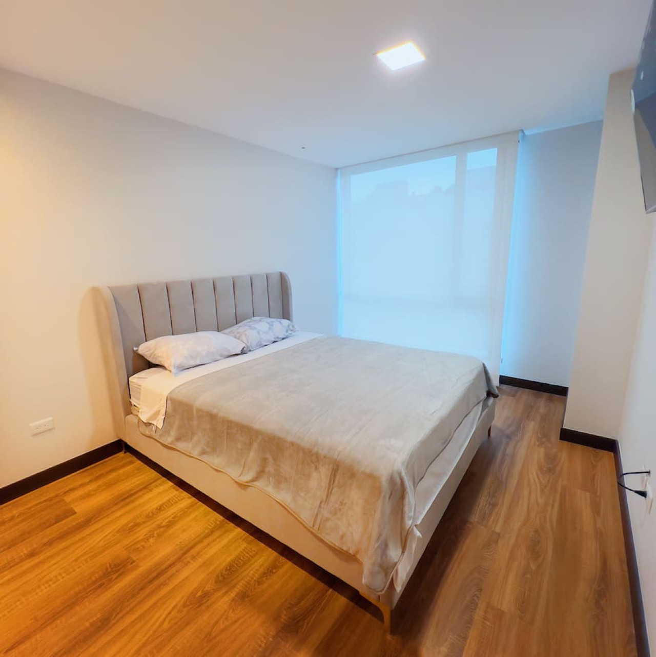 Moderno departamento de estreno cerca del Parque La Carolina. Ubicado en la exclusiva calle Portugal, en una zona segura y tranquila, ideal para familias o viajeros de negocios. Cuenta con 2 habitaciones (cama King y Queen), TV en cada cuarto, y cocina totalmente equipada con todos los implementos necesarios. El edificio ofrece seguridad 24/7 y estacionamiento privado. A pocos pasos de tiendas, restaurantes y del parque, perfecto para disfrutar de la mejor ubicación en Quito.
